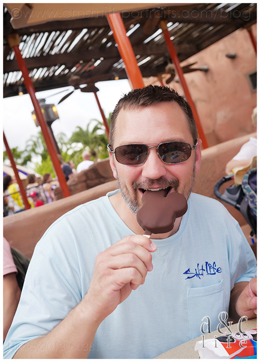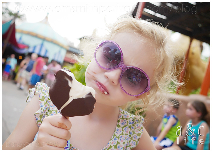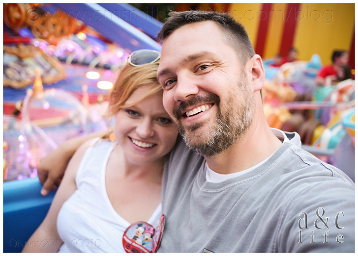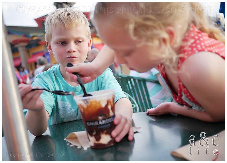 We did the “Collin arm out self portrait thing” all night and then I got the bright idea to text our friend and fellow photographer, Amy, to see if she was in the park and could take a photo of us where Collin’s arm wasn’t oddly extended. She was, and she did. But then she got all “Disney secret agent” on us and told us to follow her over to the Tommorowland Terrace, and all of a sudden this Disney guy was walking up to us with waffle cone ice cream sundaes for us to enjoy while we watched Wishes!!! Did I mention that Amy works at Disney? Gosh, I love this girl! You’ll see her later in this post…