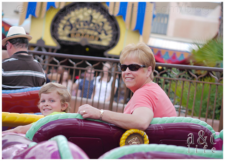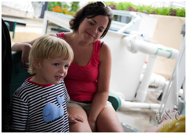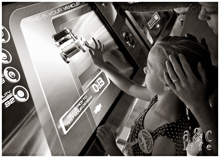 Day 2…EPCOT!! In the RAIN!!! =) We did a little Test Track and Soarin’ while we waited on the Otts to arrive. Do you like the new Test Track? I kind of miss the older one. Mak loves designing his car, though.