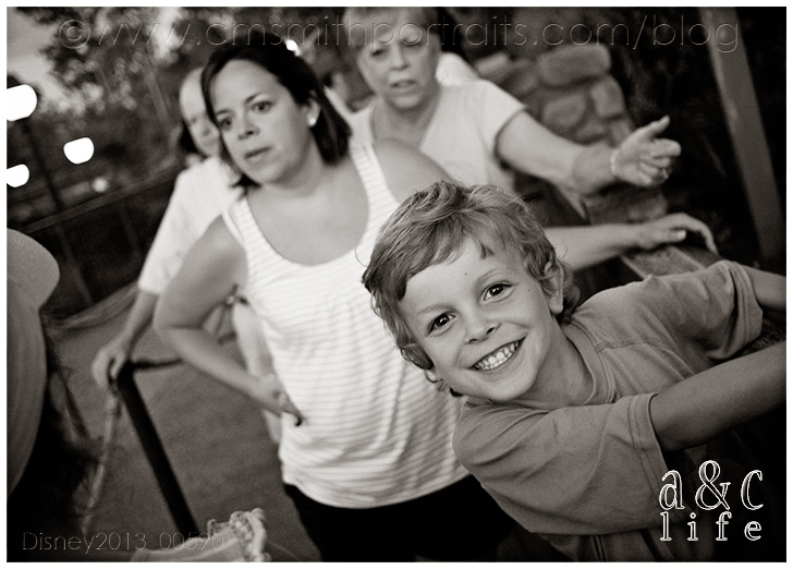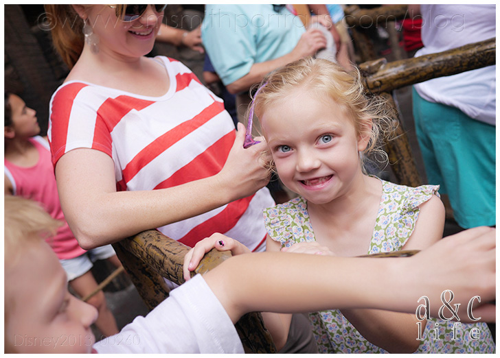 And soon, Amy was off of work and able to play. Funny story. It started raining and we headed for the Haunted Mansion since it’s inside. Amy was going to ride with Raelyn and Clara Beth. Just as they were boarding their doom buggy, the ride attendant grabbed Amy’s arm and said “Excuse me, you three need to have an adult ride with you.” HAHAHAHAHA! In the end he let the three little girls ride together. 😉