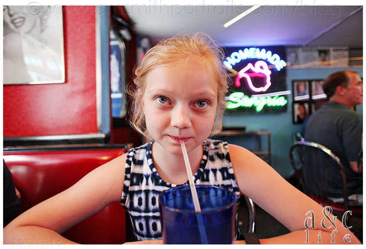 We were completely wiped out at this point and in need of food, so we headed to Ellen’s Stardust Diner hoping to get in. They don’t take reservations, but since it was an off time to eat (3:00) we were able to walk right in! Come to think of it, we didn’t wait for any meal while we were in New York.