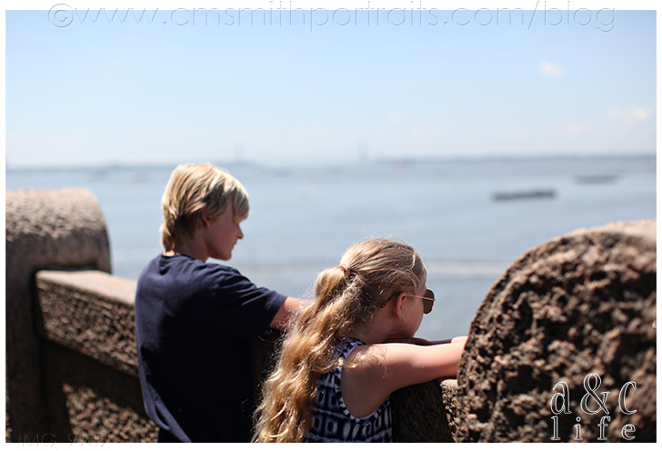 We paid for tickets to go up in the pedestal and do the little museum. Truthfully?? I could have done without it. To me, seeing the statue from the water was the best part and you can do that for free from the Staten Island Ferry. But Clara Beth really wanted to actually go there (girly loves a museum), so we did.