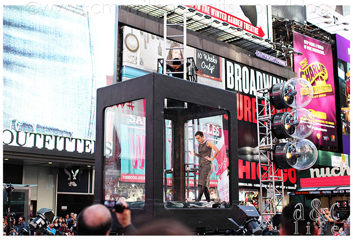The entertainment in Times Square is just plain weird. We watched people do normal everyday activities in this cube of water that would continuously fill and then drain for quite awhile. Strange.
