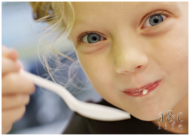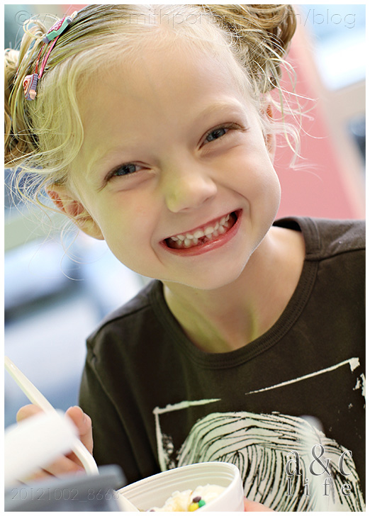 We celebrated by having some frozen yogurt for supper. Don’t judge. It’s yogurt, not ice cream, and they each had fruit. So there. And, remember, it’s not everyday that the baby of the family loses her first tooth. And most importantly, I did not have to cook tonight. See? Everybody’s happy.