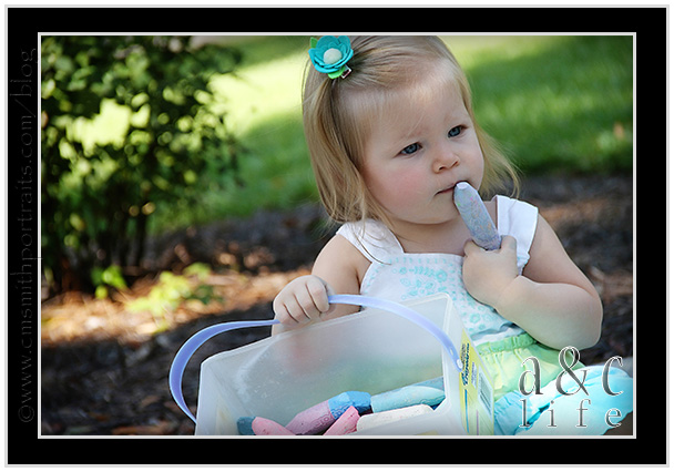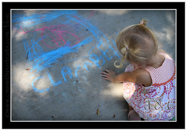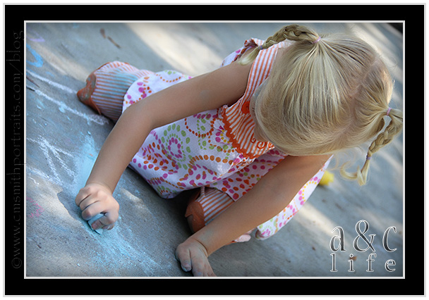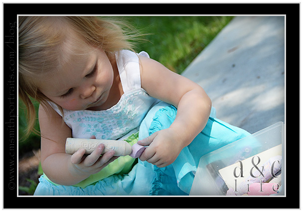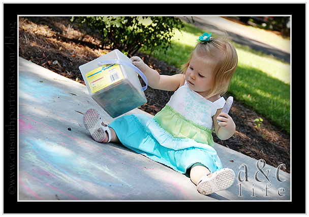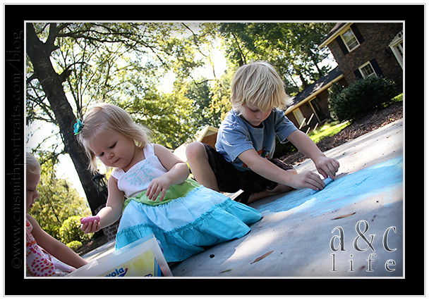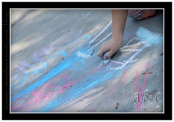 And then…sidewalk chalk!!! Mak will draw with chalk for about 43 seconds before getting bored and throwing it down to the ground in exchange for riding something with wheels. The girls played with it for about an hour.