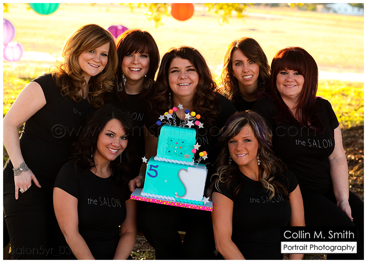 Recently Collin met with all of the fabulous ladies at The SALON for a fifth birthday celebration session. These are the women that keep the women (and men!) of Florence looking Beautiful! Seriously, I can’t say enough about The SALON, and I can’t believe that they are celebrating five years of business. It’s a given that you are going to leave this place feeling better about yourself than you did when you walked through the doors. I remember back in highschool I used to get my hair cut and then immediately rush home to re-wash and fix it because I HATED the way I looked after leaving there. {And that particular business is no longer around so please don’t feel like I am bashing anyone!} Now? I strategically plan events around my time in Barbi’s chair…and I will go days before I wash the style that she has created away. Okay, maybe not days, but I certainly re-wear it with pride the following day {and maybe the next…;) }. Date night? It’s a definite after leaving the SALON. Big party to attend? I will definitely be in Barbi’s chair that afternoon. It’s just a given that I will be amazed with the results after my time at The SALON.