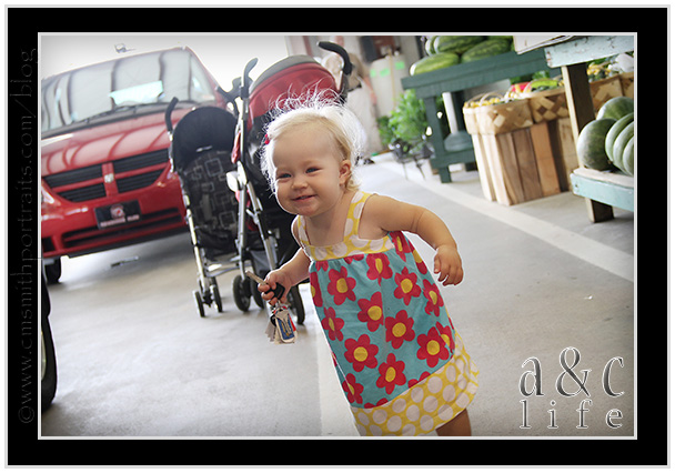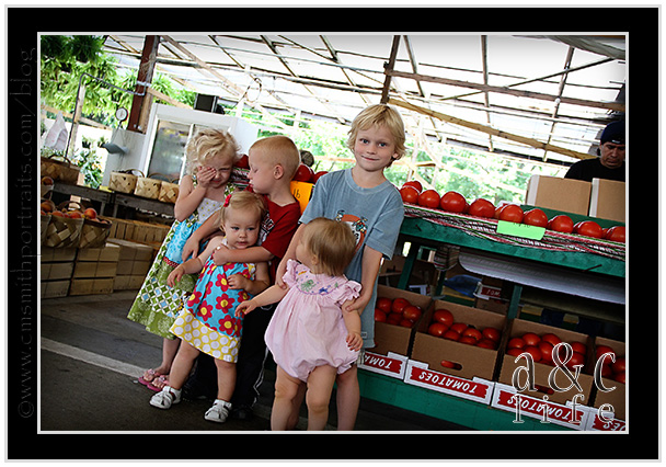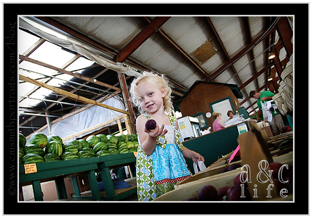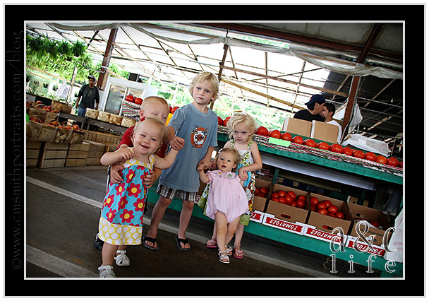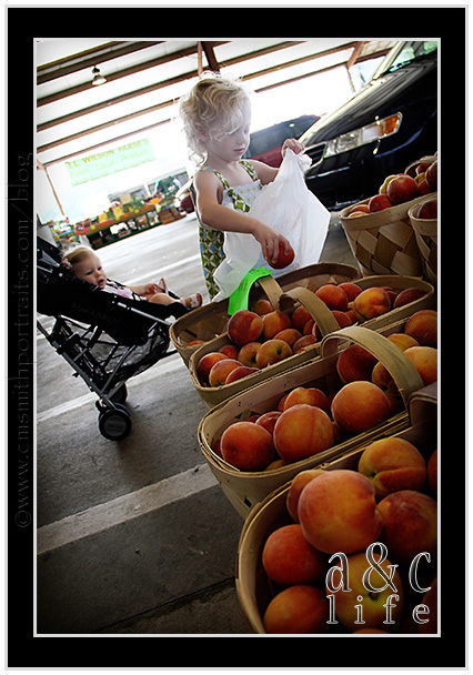So on Monday I had had it. Momma put her foot down. The thing that pushed me over the edge was when Miss CB pitched a sweet little fussy fit when I refused to allow her to eat fruit chews and chocolate pudding for breakfast. My sister-in-law, Rebecca asked me if I wanted to join her on a trip to The Farmer’s Market and I got SO Excited. The prospect of putting REAL vegetables grown in local soil into their little bodies had me giddy. So off we went. And we even had FUN doing it…
