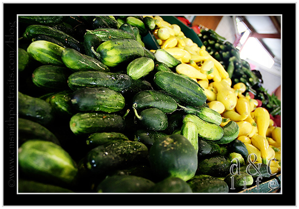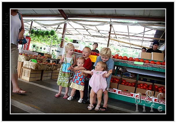 But not to buy a fat pig. More like to keep my kids from becoming fat pigs. This is what my facebook status read on Monday: new goal for the summer as of this morning: get these children of mine to eat vegetables. You know, the good stuff that comes straight from God’s green earth. Heading to The Farmer’s Market with Rebecca and the kids and then to Tomlinson’s for pretty, summery stuff to put it all in. I WILL win this battle. 🙂