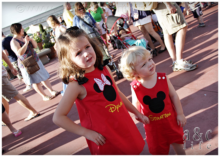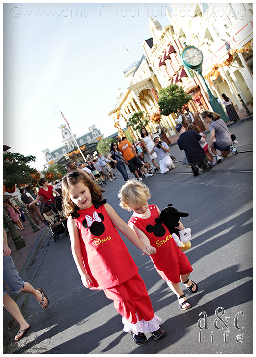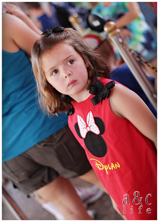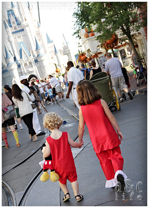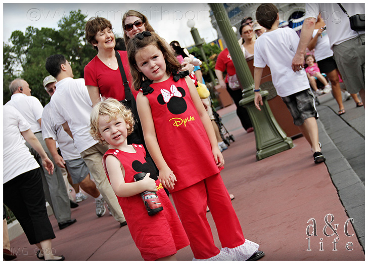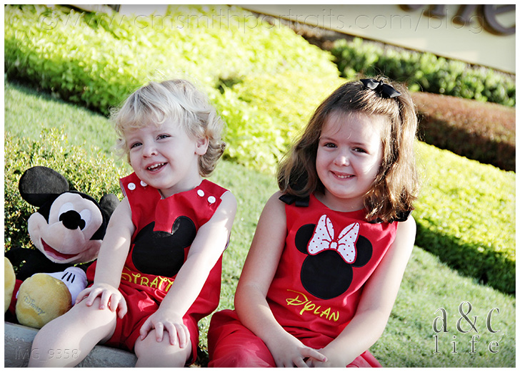Okay, I know. Cheesy title. But all of you Disney lovers know the tune I’m talking about, right? If I could pick my all-time dream destination for an A&C Life session, this would be it. The Magic Kingdom. But even better than that, a CUTE two and six year old at the Magic Kingdom. LOVE!!! Let me start at the beginning. A couple of months ago Collin got an email asking if we would possibly be going to Disney in September. It was from a momma all the way out in Texas and she was curious about having a portrait session done. Well, as you now know, we were in fact planning on being at Disney in September. Only they would be arriving on the day we were scheduled to leave. We were left with a choice: leave Disney on Monday as planned or extend the trip by two days and photograph our favorite Texas family at The Happiest Place on Earth. Yeah, it was a real tough decision. So we got the portrait session with Collin set up, and then Nancy (the TX Mom) asked if I would be interested in an A&C Life session at The Magic Kingdom on the morning that they were entering the park for the first time. ARE YOU KIDDING ME?!?! Um, yeah, I could go for that.