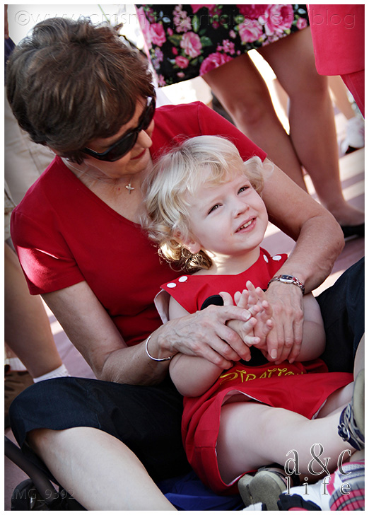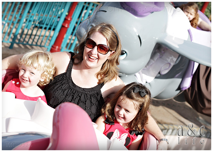 Not 5 seconds after our Dumbo took flight, the ride stopped and we slowly came back to the ground. It seemed that the smallest riders should be on the inside. Oops. =)