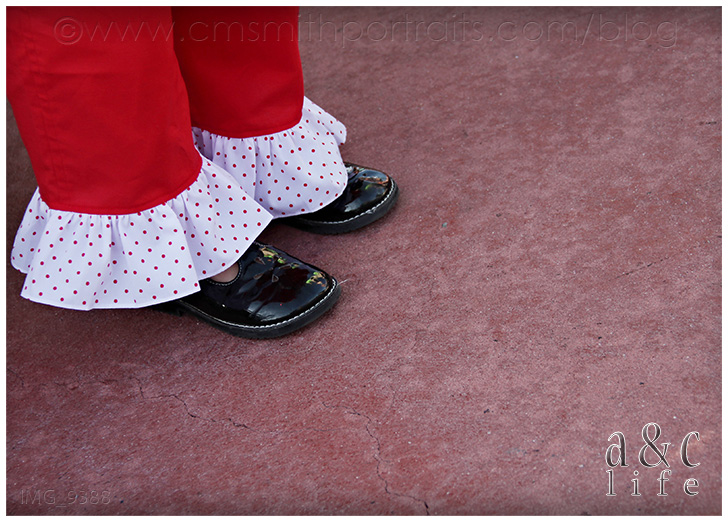 Red polka-dot Minnie ruffle pants? LOVE.